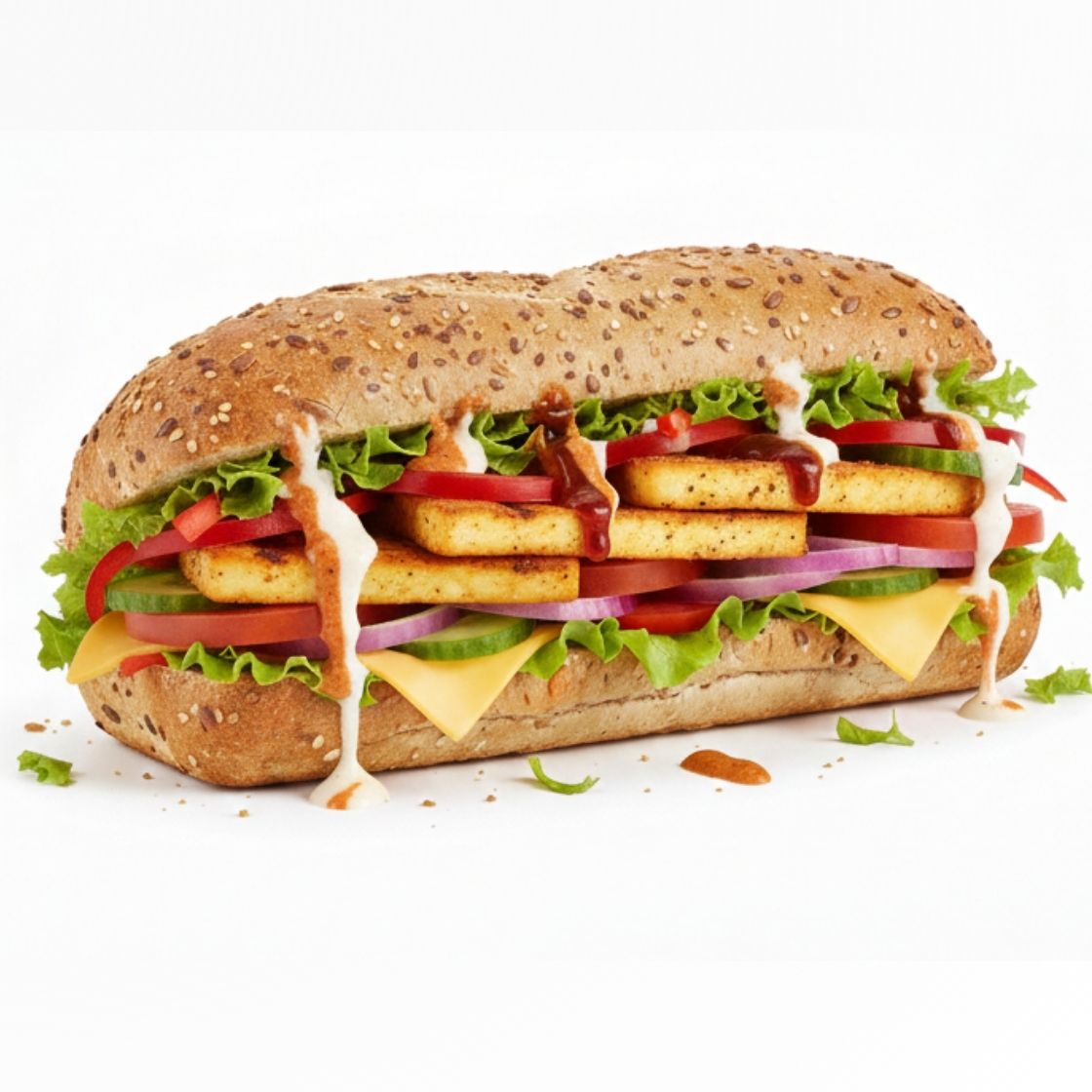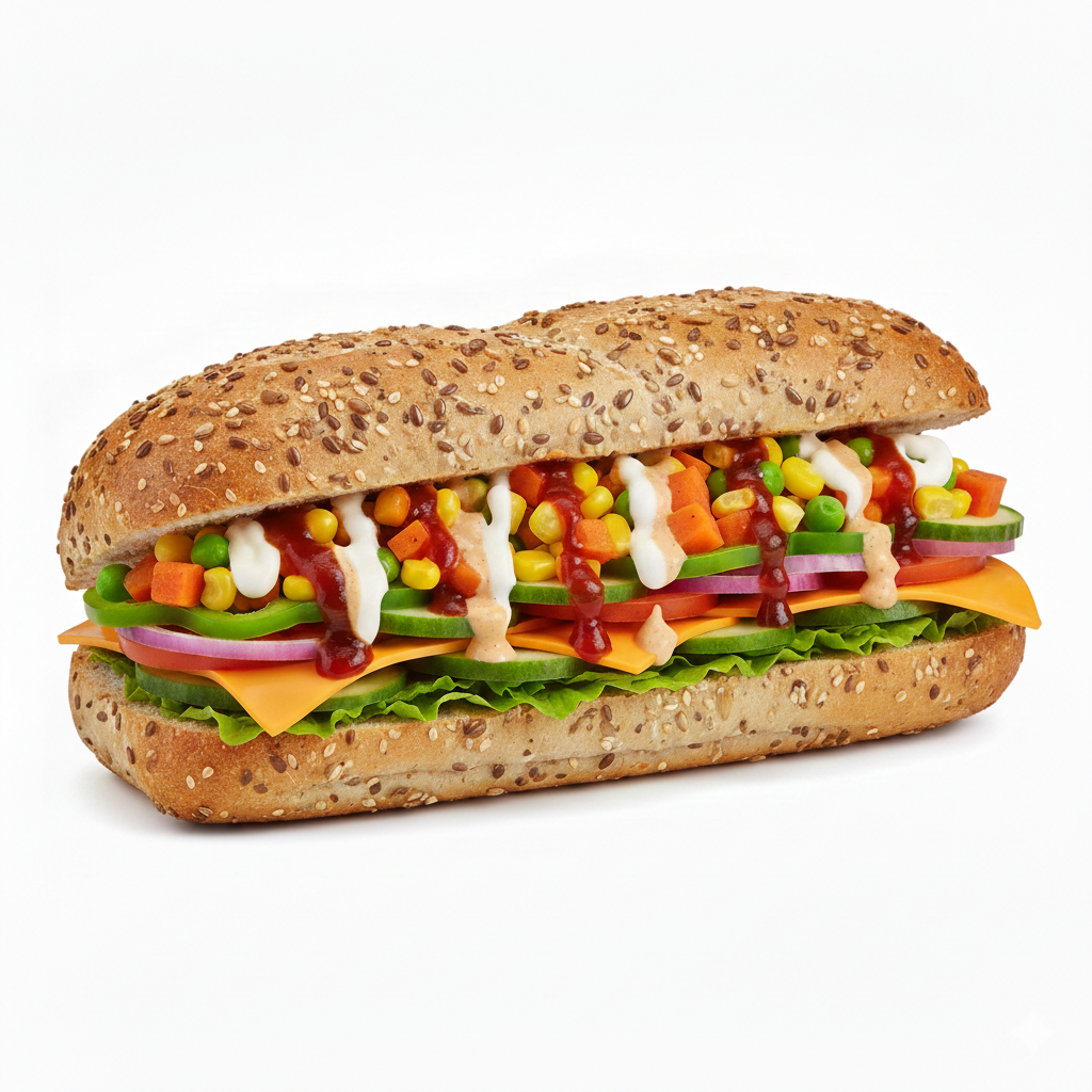A crisp mix of fresh lettuce, tomatoes, onions, cucumbers, and capsicum layered on freshly baked bread with signature sauces. Light, refreshing, and made fresh to order.